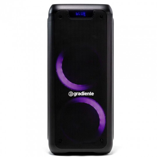 Caixa de Som 400W Woofer 6,5" BTH FM LED TWS Bateria Gradiente GCA201 Bivolt. Com o efeito de luzes Power Colors Lights, você transforma qualquer ambiente em uma festa. Qualidade impecável de som, na mesma intensidade para toda a galera, até mesmo para quem está atrás do aparelho. Possui ainda bateria interna recarregável que dura até 5 horas e função gravação.