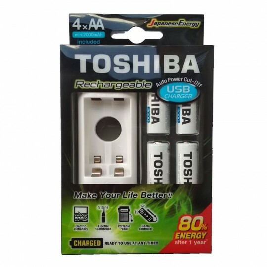 Carregador Toshiba com 4 Pilhas Aa Recarregáveis Micro USB TNHC6GME4