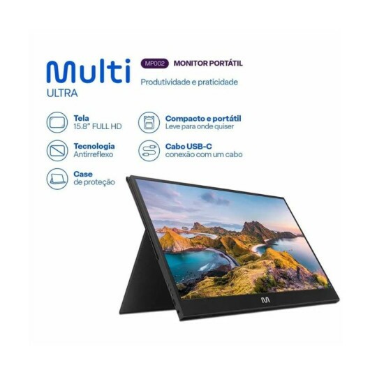 O Monitor Portátil 15.8” Multi é ideal para visualizar documentos, planilhas, imagens e assistir vídeos, filmes e séries com alta qualidade.
