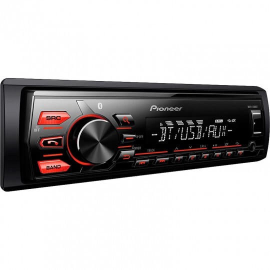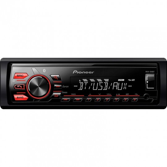 om Bluetooth integrado, o MVH-288BT garante a conectividade de seu automóvel por meio da tecnologia que permite fazer e receber ligações sem a utilização de fios. Além disso, ele é seguro, pois você não precisa tirar a mão do volante para executar suas funções. É possível aproveitar todas as funcionalidades usando apenas a conexão de seu smartphone com Android™. Você também pode contar com a entrada USB frontal para reproduzir suas músicas pelo pen drive. O visual fica por conta da iluminação vermelha dos botões.