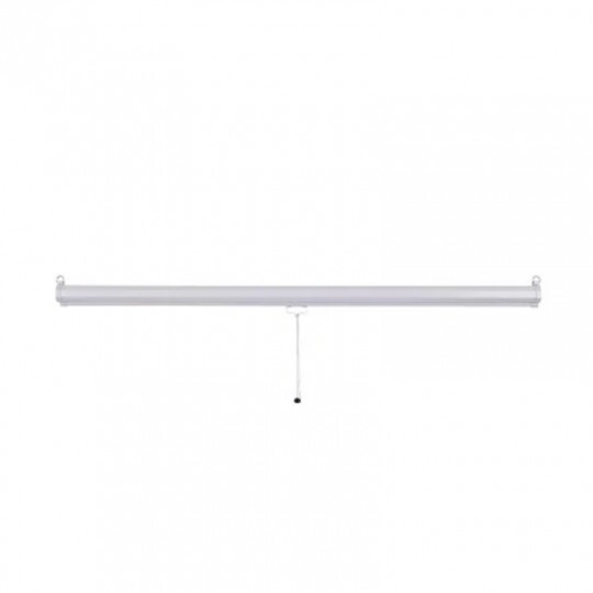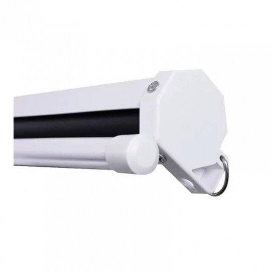 A tela de projeção retrátil vai elevar a qualidade das imagens nas suas projeções. Versátil, pode ser fixada no teto ou parede e se adaptar a vários ambientes.