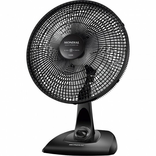 Ventilador de mesa NV-75-6P-NP Maxi Power da Mondial, possui 3 velocidades, 140W de potência e sua hélice de 40cm é ideal para deixar seu ambiente agradável. É silencioso, possui inclinação ajustável e sua grade é removível para limpeza.